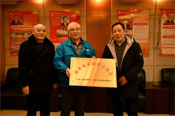 2022年 12月8日下午,泾县人民检察院、泾县市场监督管理局联合授予我公司“商业秘密保护示范点”铜牌。皖南电机监事会主席胡夏生接待了县检察院副检察长王亨英、县市监局副局长陈阳平一行,并介绍了我公司的商业秘密保护工作。